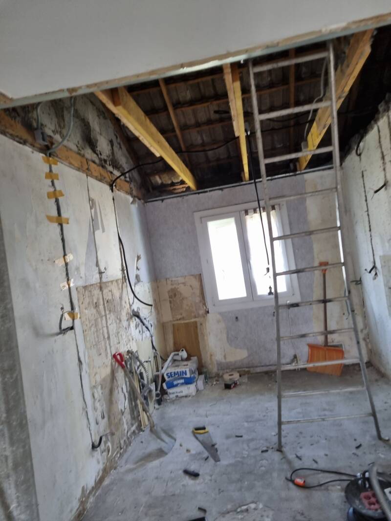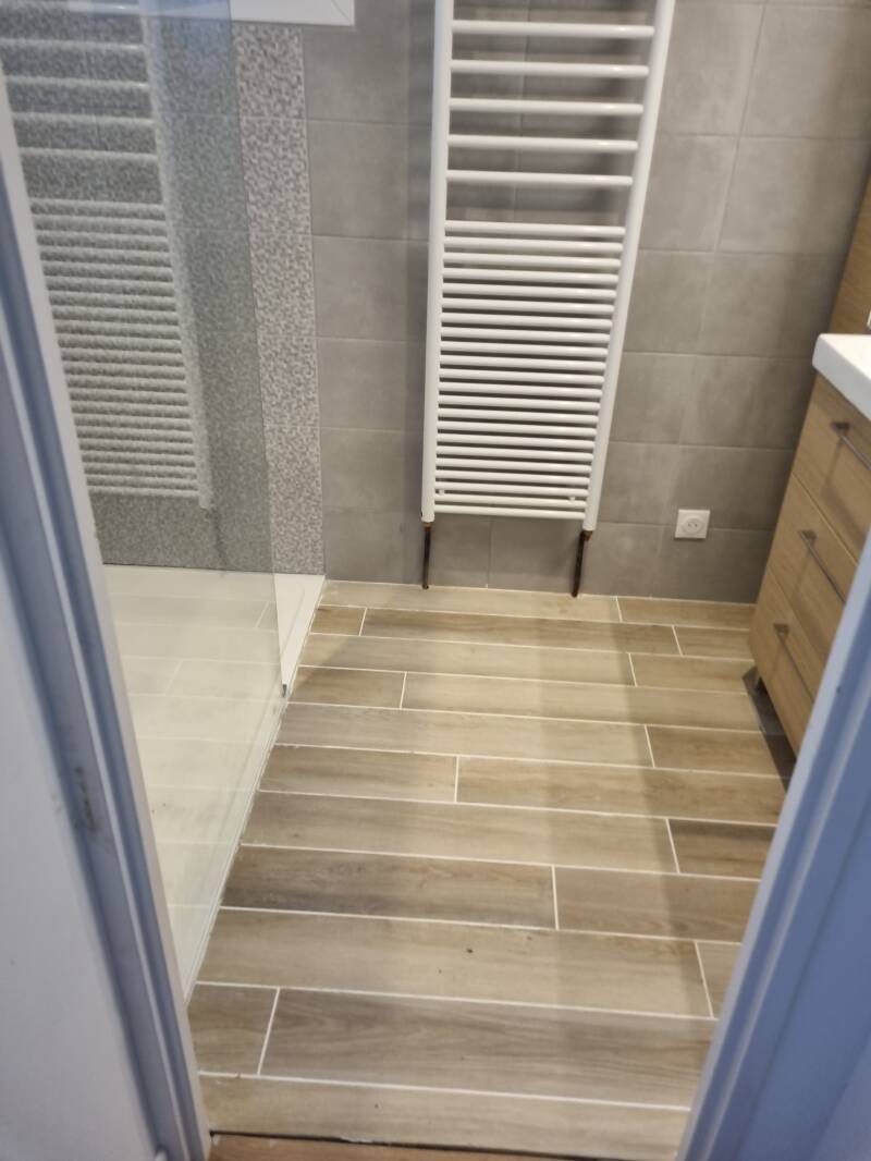 - Ici, salle d'eau (peinture; sol; plomberie; cabine de douche) :