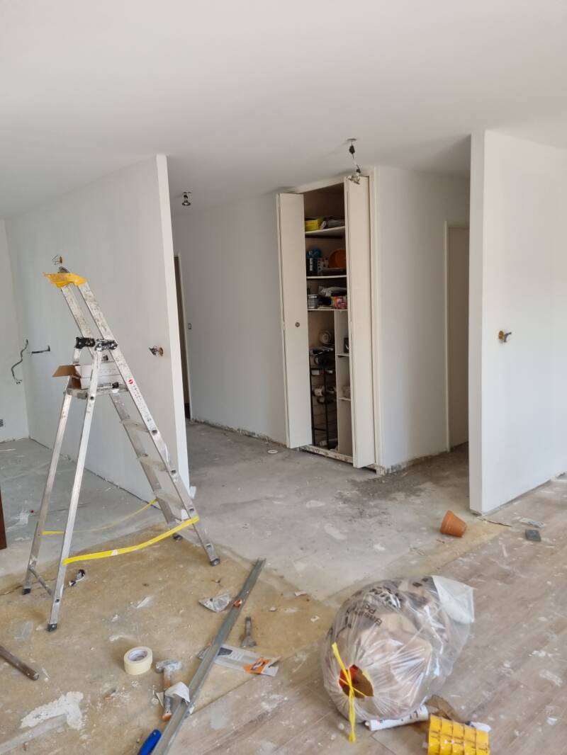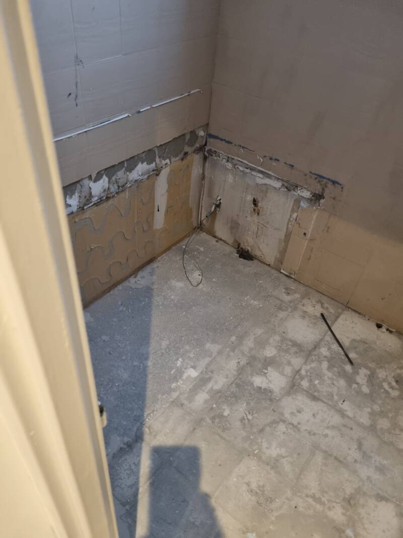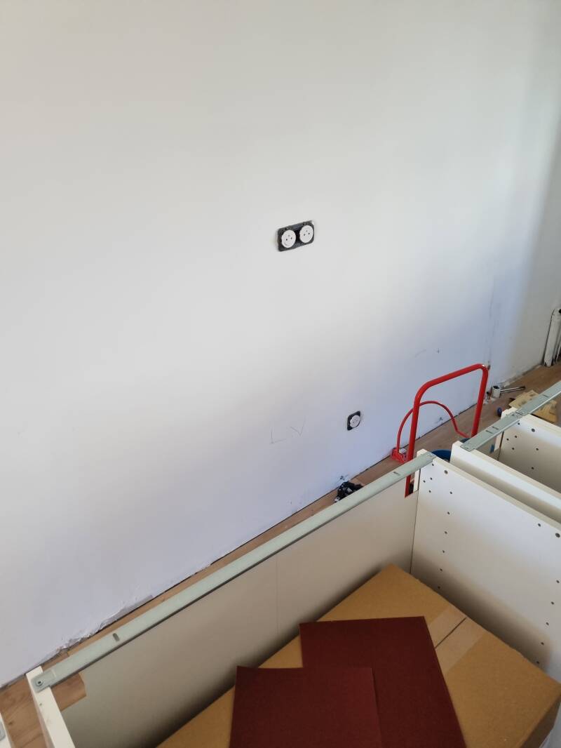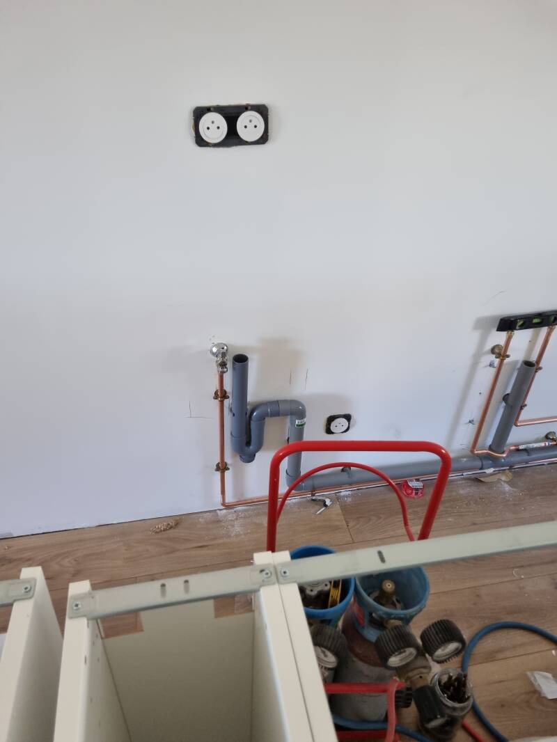 - Ici, mise en place d’une arrivée d’eau pour la pose d’une cuisine équipée.
